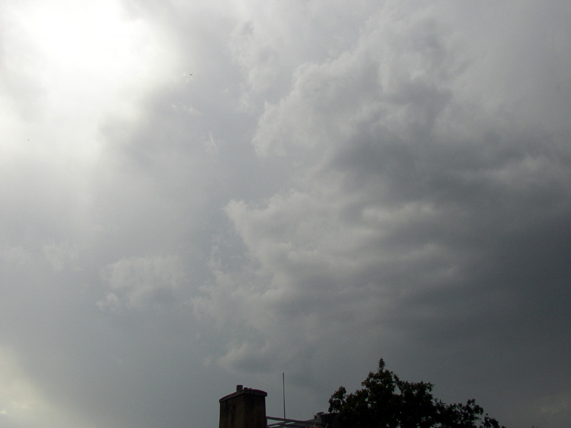 Tady u Olomouce to nejdřív vypadalo nijak, v dálce dosti hřmělo, oblačnost nevýrazná... Pak přišla středně silná přeháňka, která vypadala po pár minutách, že končí. Najednou v pozadí byly vidět praecipitatio dosahující až k zemi jak sebou mrskají až mi zatuhla krev v žilách a než jsem stihl vzít foťák do ruky, tak už nebylo vidět dál jak na deset metrů. Nárazy větru odhaduju místy až na 25 m/s. po chvíli srážky zvolnily aby posléze zase udeřily. Suma sumárum odhad srážek podle dlouhodobého pozorování 30-35 mm. Blesková aktivita - cca 3 ks blízkých úderů do 1km.