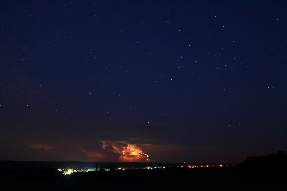 jo to byl parádní večer. Kdy naposledy jsme mohli sledovat tak vzdálené bouřky i s tím, že by byly vidět blesky? Fakt parádní dohlednost. Jediné, co to u mě kazilo, že jsem neměl úplně nejlepší výhled přes horizont, ale i tak to byla podívaná. Dlouho jsem fotil blesky a když se setmělo, tak mi to nedalo a zkoušel jsem i sprajty, ale kromě super dohlednosti to na ně moc nebylo, takže "vystřílených" přes 1000 fotek bylo nakonec podle očekávání k ničemu. ale prostě co kdyby... Výsledkem jsou tedy prakticky stejné úlovky jako mají ostatní, kdo to sledoval...
