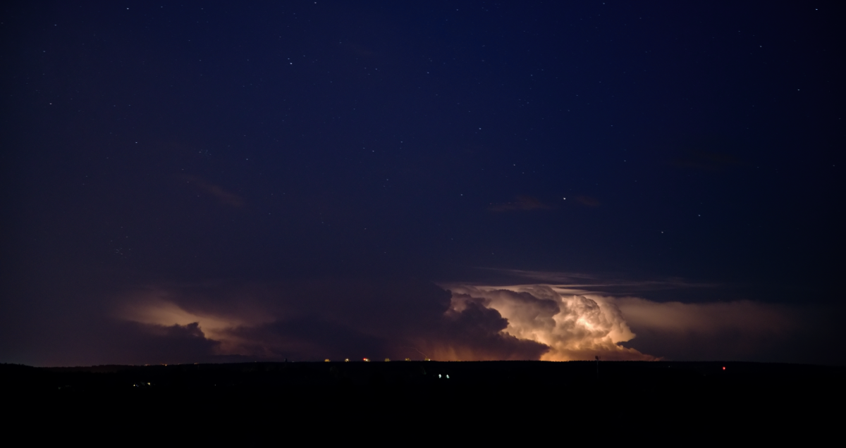 Ahojte, včerejší večer stál opravdu za to. Po západu slunce jsem začal pozorovat velmi vzdálený (170 km!!!) Cb, který rostl někde v jižní části Šumavy. Díky dobré dohlednosti se daly pozorovat a hlavně fotit blesky osvětlující Cb, objevily se i CG+. Nad hlavou hvězdy a okolo světlušky, parádní letní večer