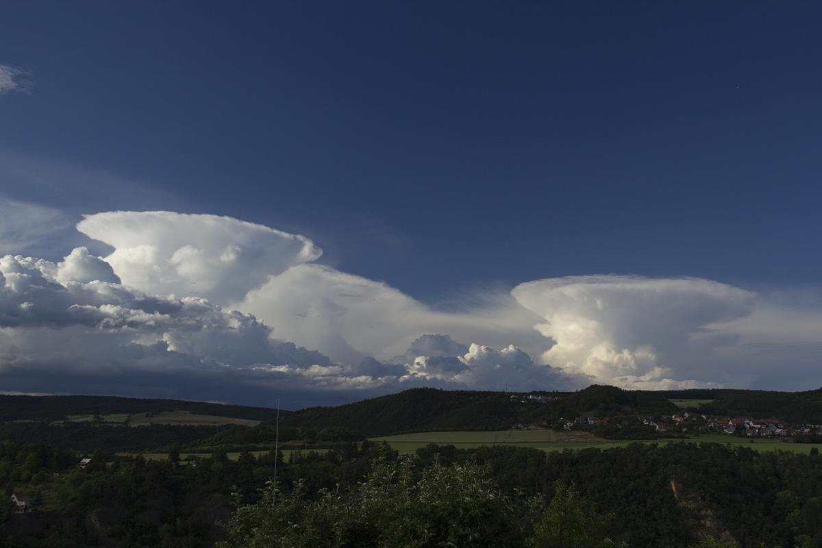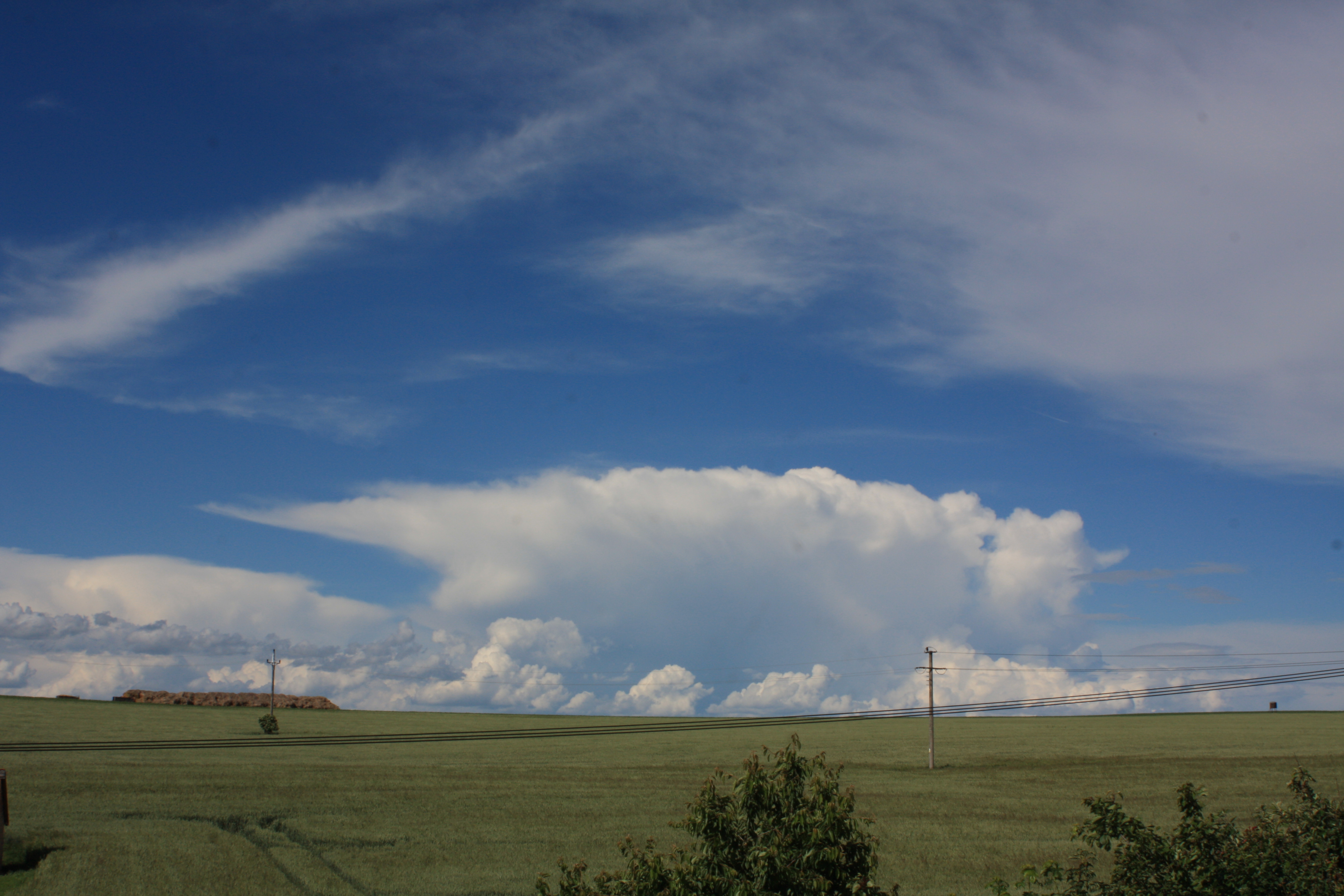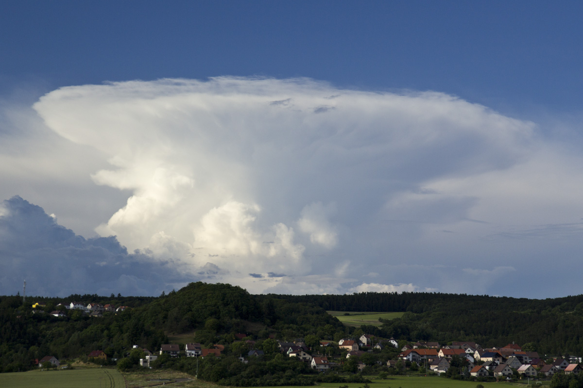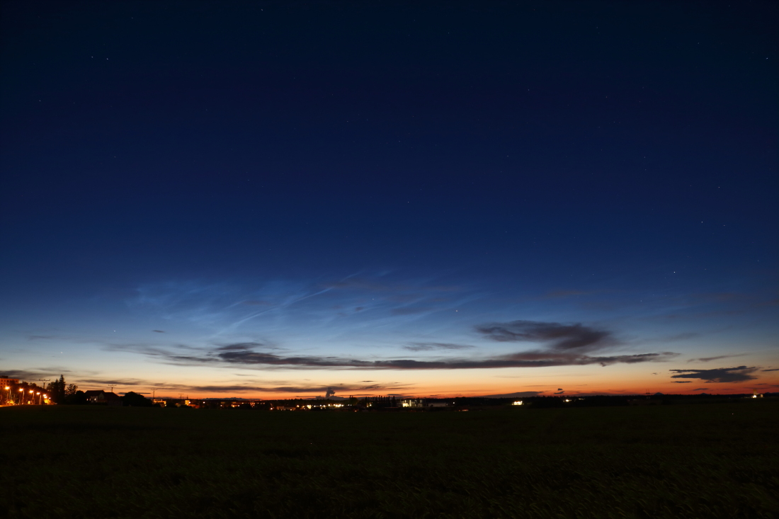 Včera celkem zajímavá podívaná. Po celý den samé cumulonimby, občas i pohledné. Večer se o nás otřela linie s několikerým zahřměním. Po setmění sporadická blýskavice na JV. A před půlnocí završení celé podívané - první letošní NLC.