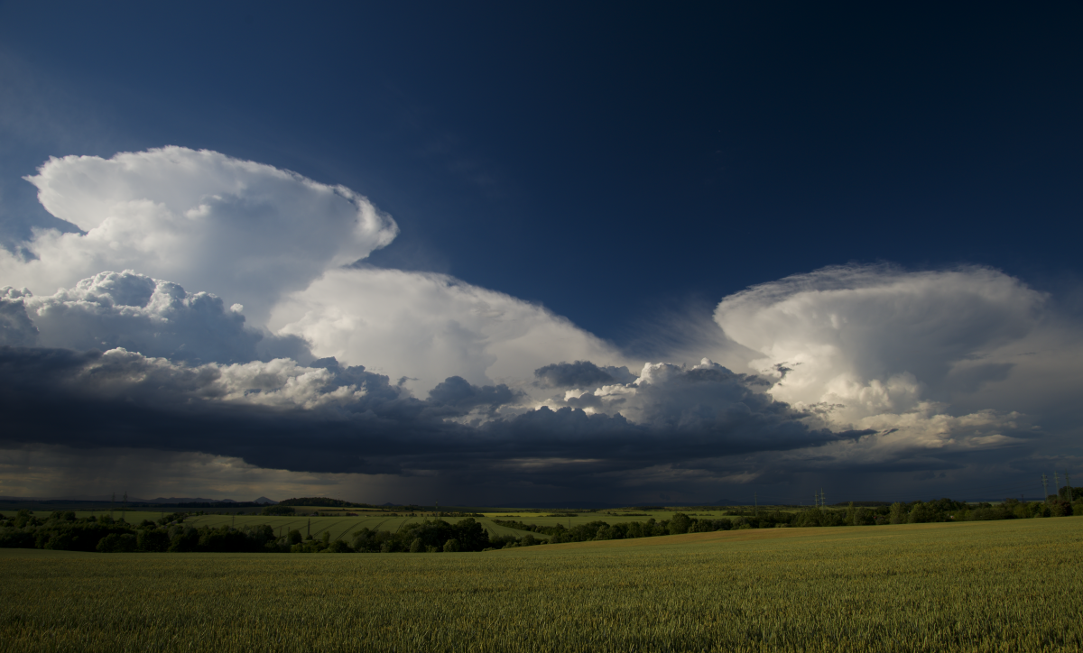 Kolem 19:00 SELČ se od Rakovníka směrem na severovýchod protáhla, a brzo se rozpadla, řada slabých bouřek. Z pole za Stochovem jsem tak měl těch pár cb jako na dlani, včetně několika CG blesků a krásně vyjádřených srážkových polí. Supercely to sice nebyly, ale mám z toho větší radost než ze čtvrtka. Takhle by to mělo vypadat...