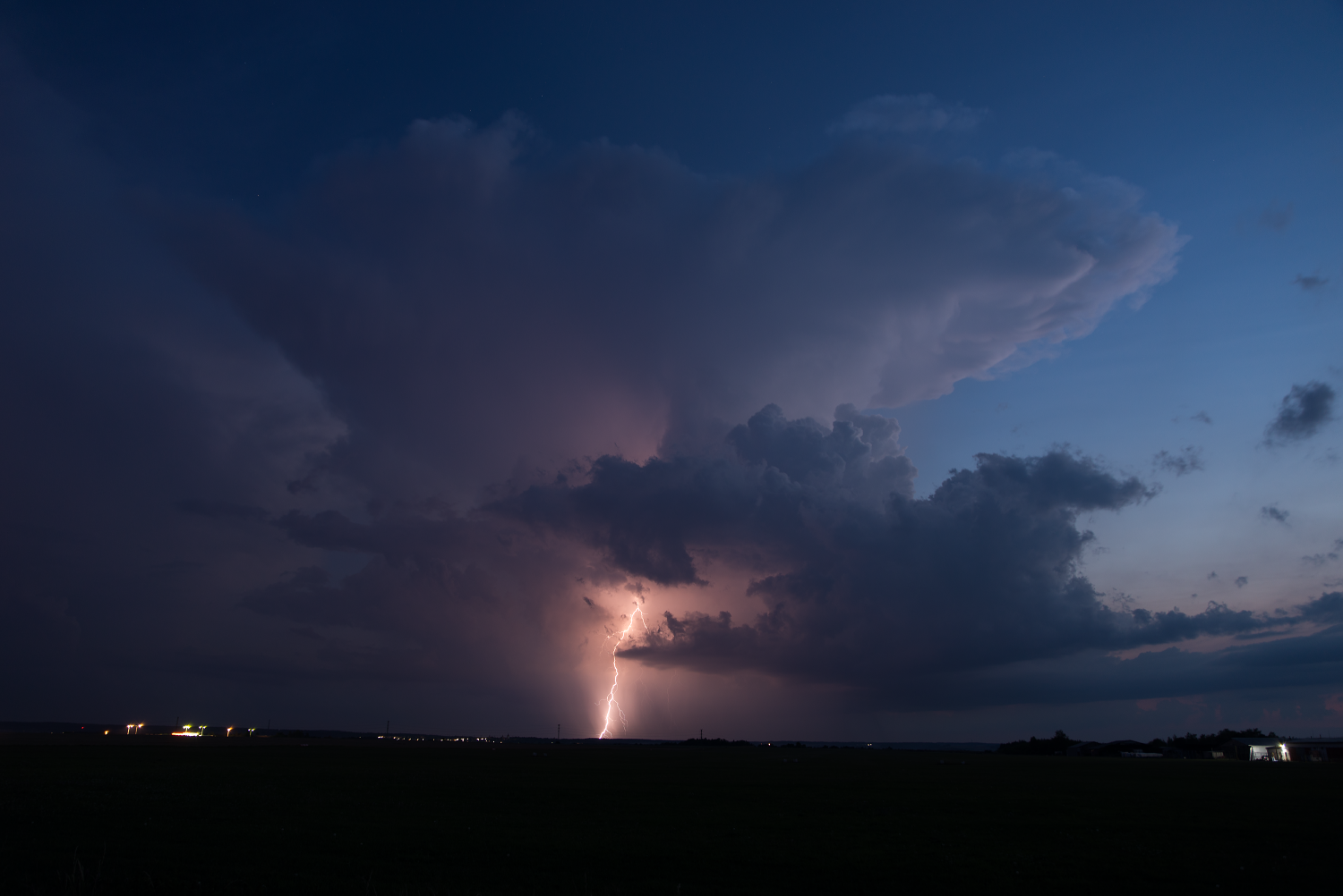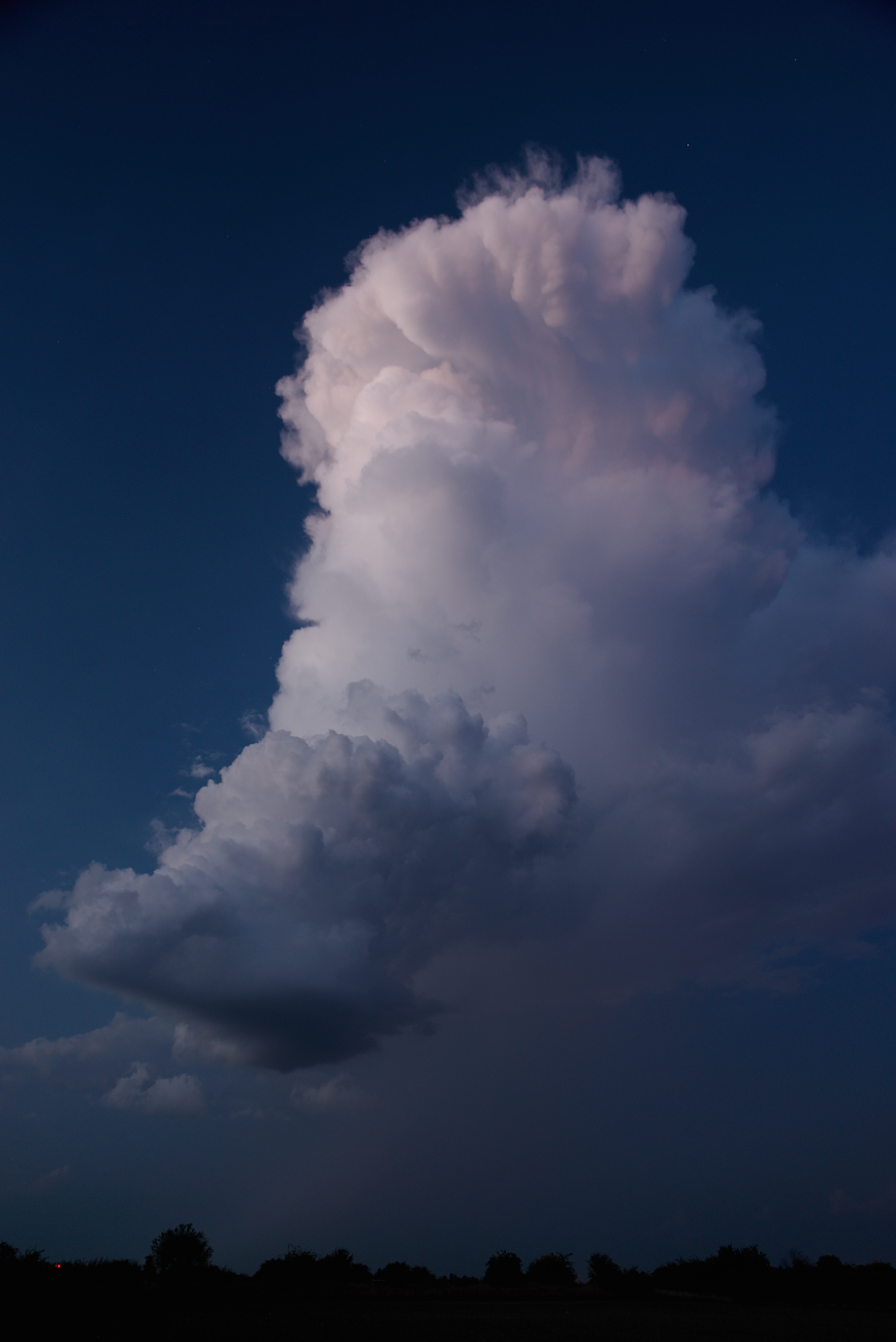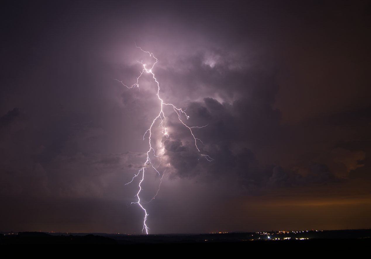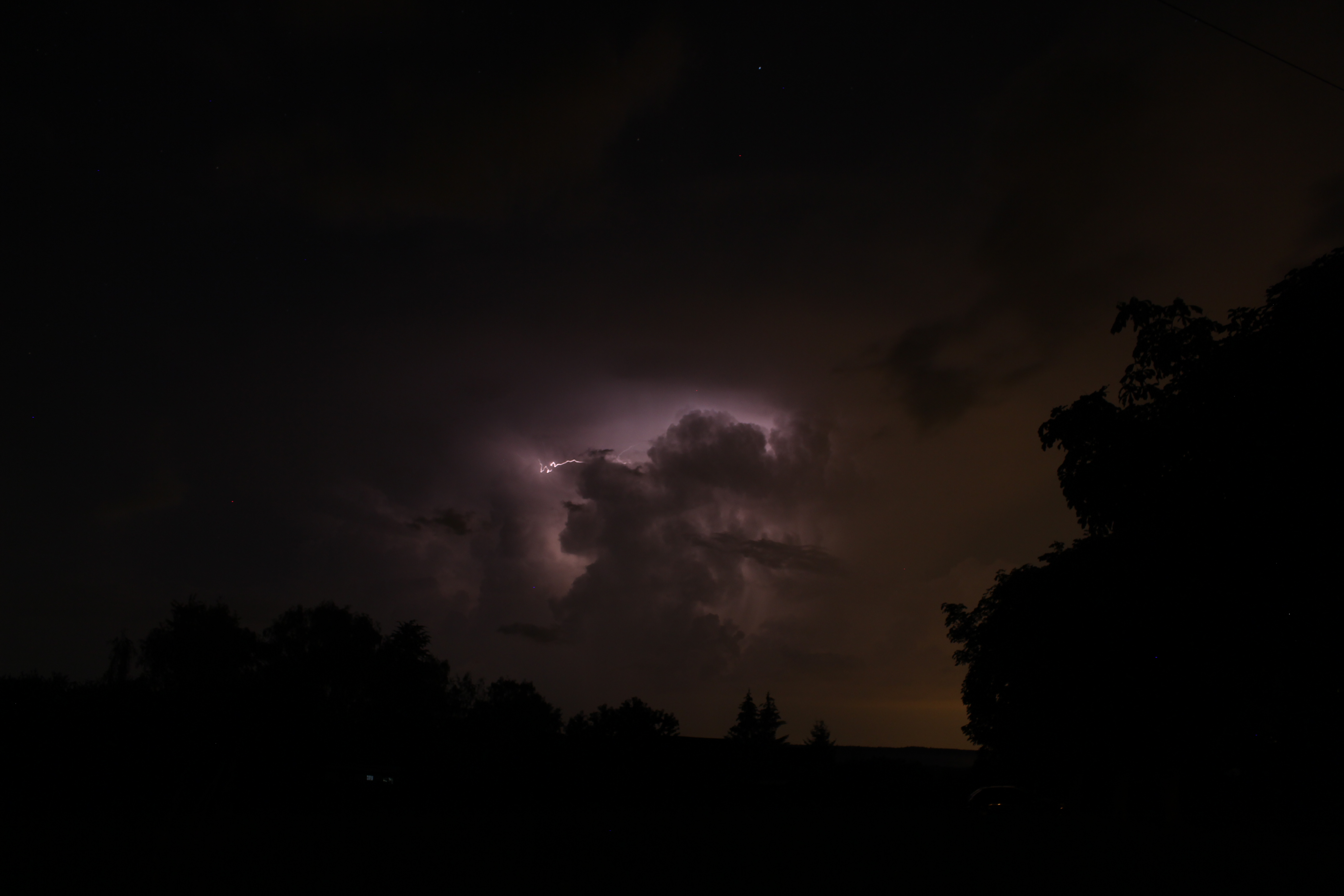 Navážu na příspěvek páně Ameriky. Bouřky 25. jsem samozřejmě prospal (letos na to mám štěstí), ale sobotní večer mi to vynahradil víc než bohatě. Jako kdyby se letošní sezóna ještě snažila nahradit tu dosavadní bídu... Odpoledne už dávalo tušit, že by se něco mohlo odehrát, ale večer dalece předčil očekávání. Krátce po západu slunce jsem se vydal ven vstříc těm několika odrazům, co ještě naskákaly na radaru, a nestačil se divit. Nádherná, ukázková kovadlina bouřky nad Plzní a na dosah ruky severem jdoucí přeháňka, která neměla daleko k tomu, aby se stala LP supercelou. Sice později dorostla do stadia cb, ale záhy se rozpadla. Nicméně se to obešlo bez blesků, vyjma jednoho CG z umírající kovadliny. To hlavní se ale začalo dít až později. Jeden z kumulů nad Rakovníkem najednou začal prudce růst do výšky, během pár minut se ukázala nová kovadlinka a za další chvíli se s frekvencí asi 5x do minuty rozblikal. Jenže blesky byly hlavně nepříliš výrazné IC, veškerá snaha o vyfocení vyzněla naprázdno a pak mě déšť zahnal na ústup. Bouřka při přechodu tradičně zeslábla, tak už jsem jí pak nevěnoval pozornost. Doma přebírám fotky, a najednou záblesk na východě. A další, a další. Himl, to bylo odkud? Žhavím radar, a koukám jako blázen. "Rakovnická" bouřka se vzpamatovala, a já mám najednou za oknem cébák prosvěcovaný jedním IC za druhým. Takže foťák, zase ven a koukám na to divadlo. Co pět vteřin jeden nebo série záblesků, na vystřelovák jsem štěstí bohužel neměl, kochal jsem se asi dvacet minut než záludně dorazila další přeháňka a já musel opět vyklidit pole.