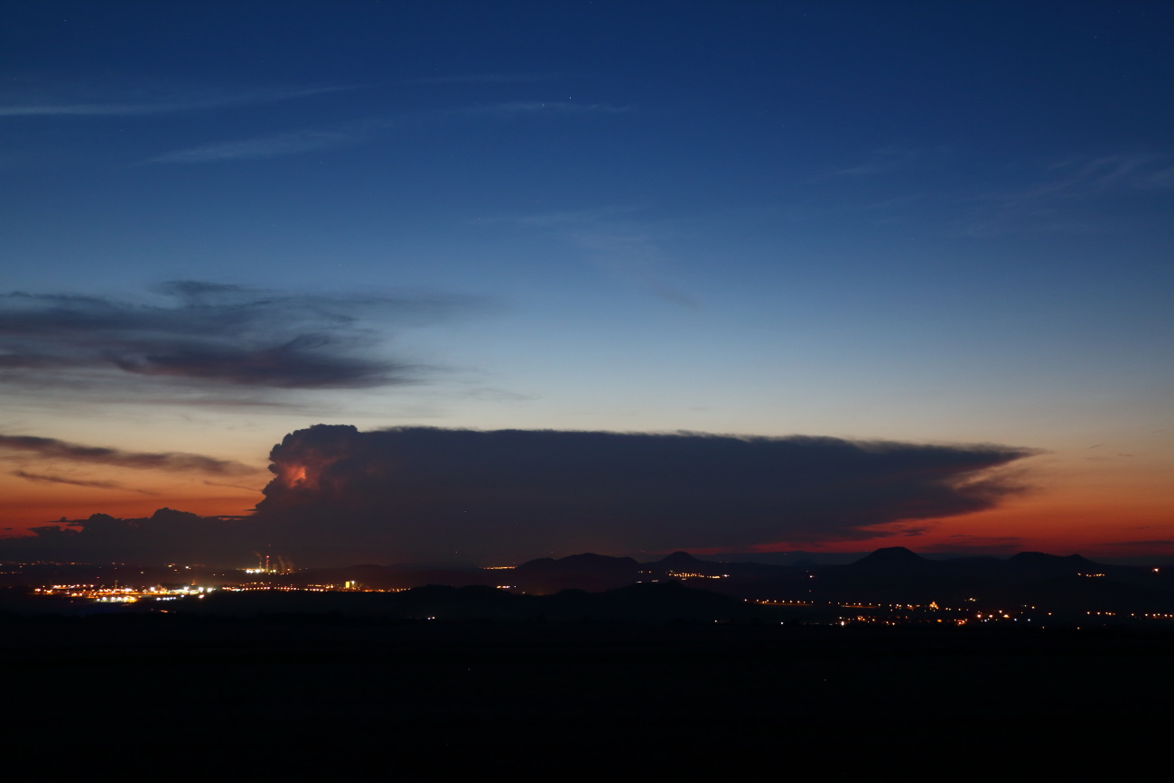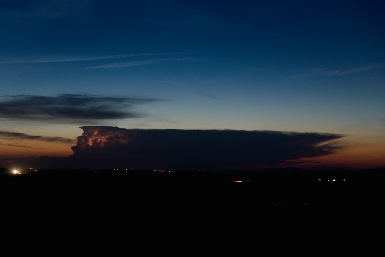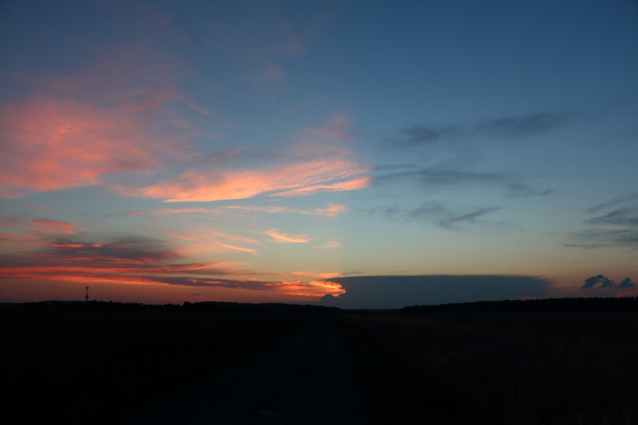 Naštěstí na úplný závěr se atraktivita počasí zlepšila - i díky tomu, že nebyl bordel z kovadlin, které se před náma z dálky i s bouřkama vypařovaly. V první řadě nádherná bouřka v Německu. A pak - poprvé v životě jsem na vlastní oči viděl sprity. Od bouřek z Polska. Na 95% to mucely být ony. Jen je mi divné, že byly docela vysoko - nejméně 10-ti násobek výšky kovadliny. Blikla najdřív kovadlina a pak v zlomku vteřiny něco nad tím ve tvaru jakoby pár padáčků chmíří od bodláků. Bouřka už byla tou dobou ale docela slabá.