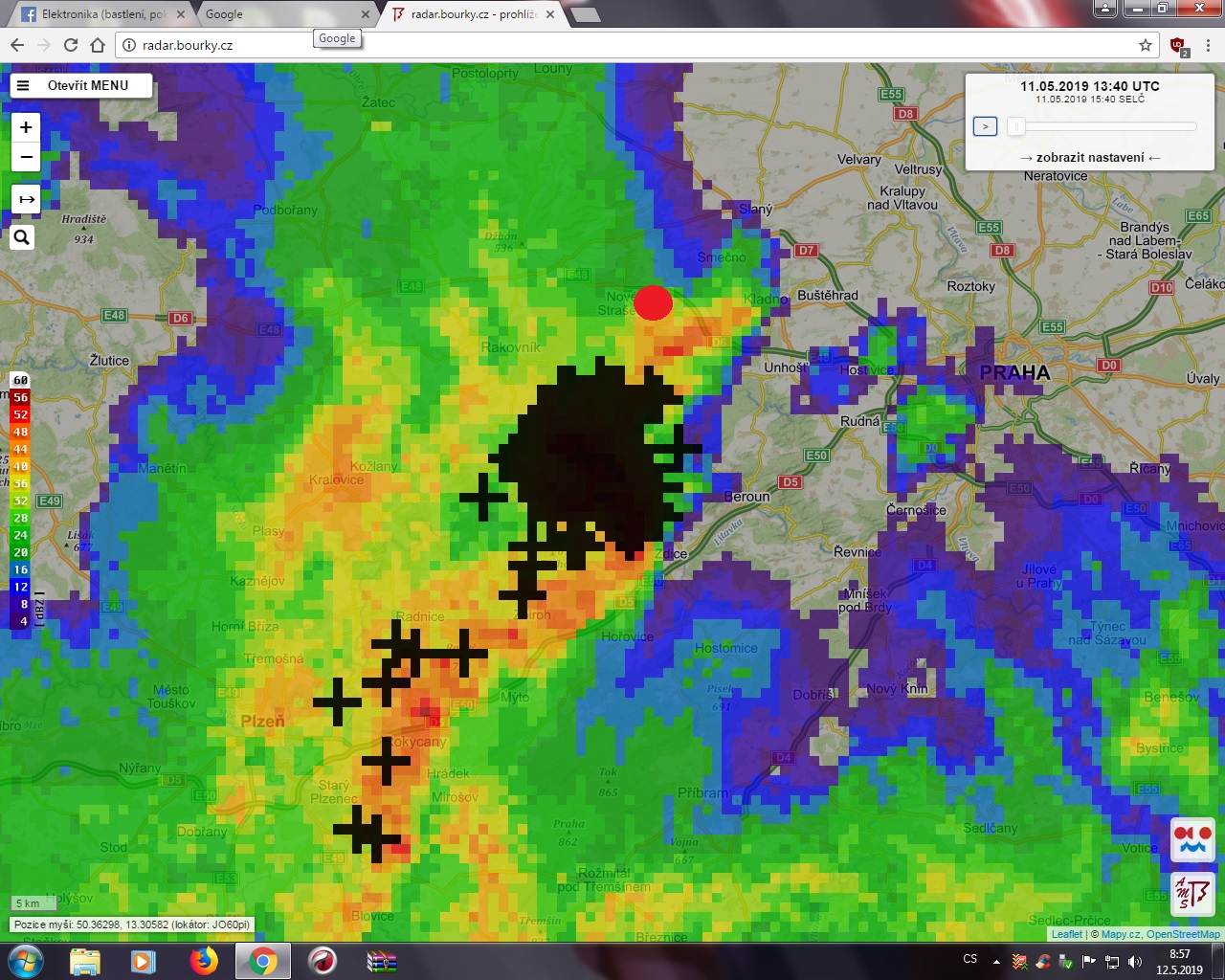 Mě ten systém nakonec minul asi o kilometr, takže navzdory očekávání se místo arcusu a krup konala jen "nějaká" struktura, pár CC blesků napůl schovaných v dešti a slabá přeháňka. A to to ze začátku vypadalo tak nadějně...