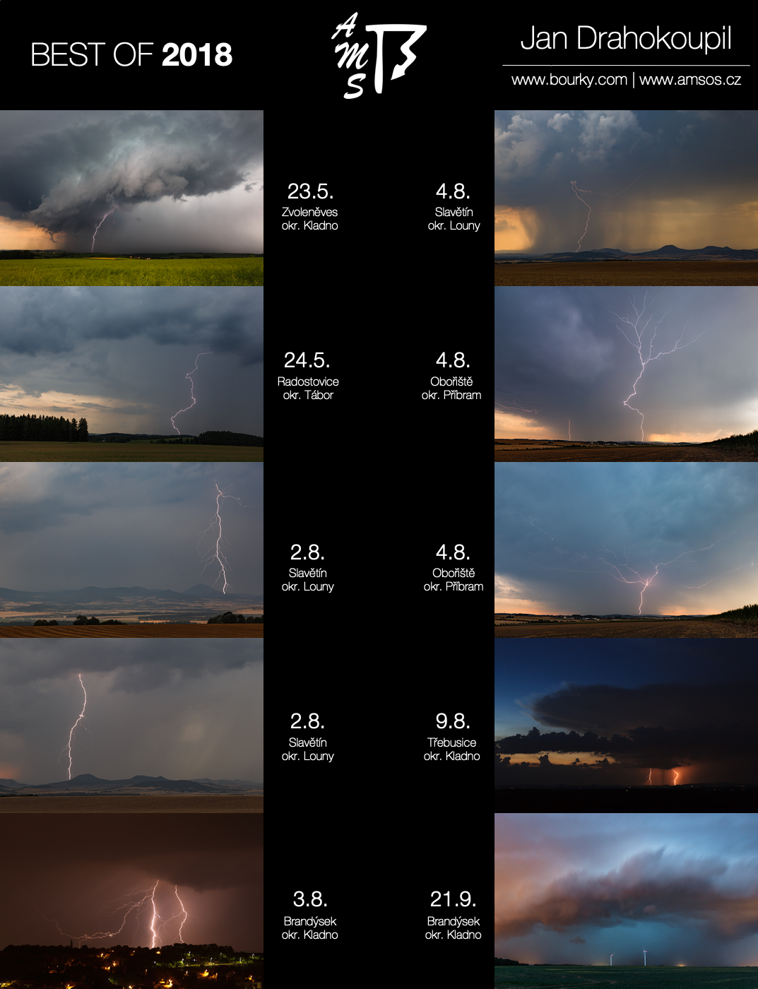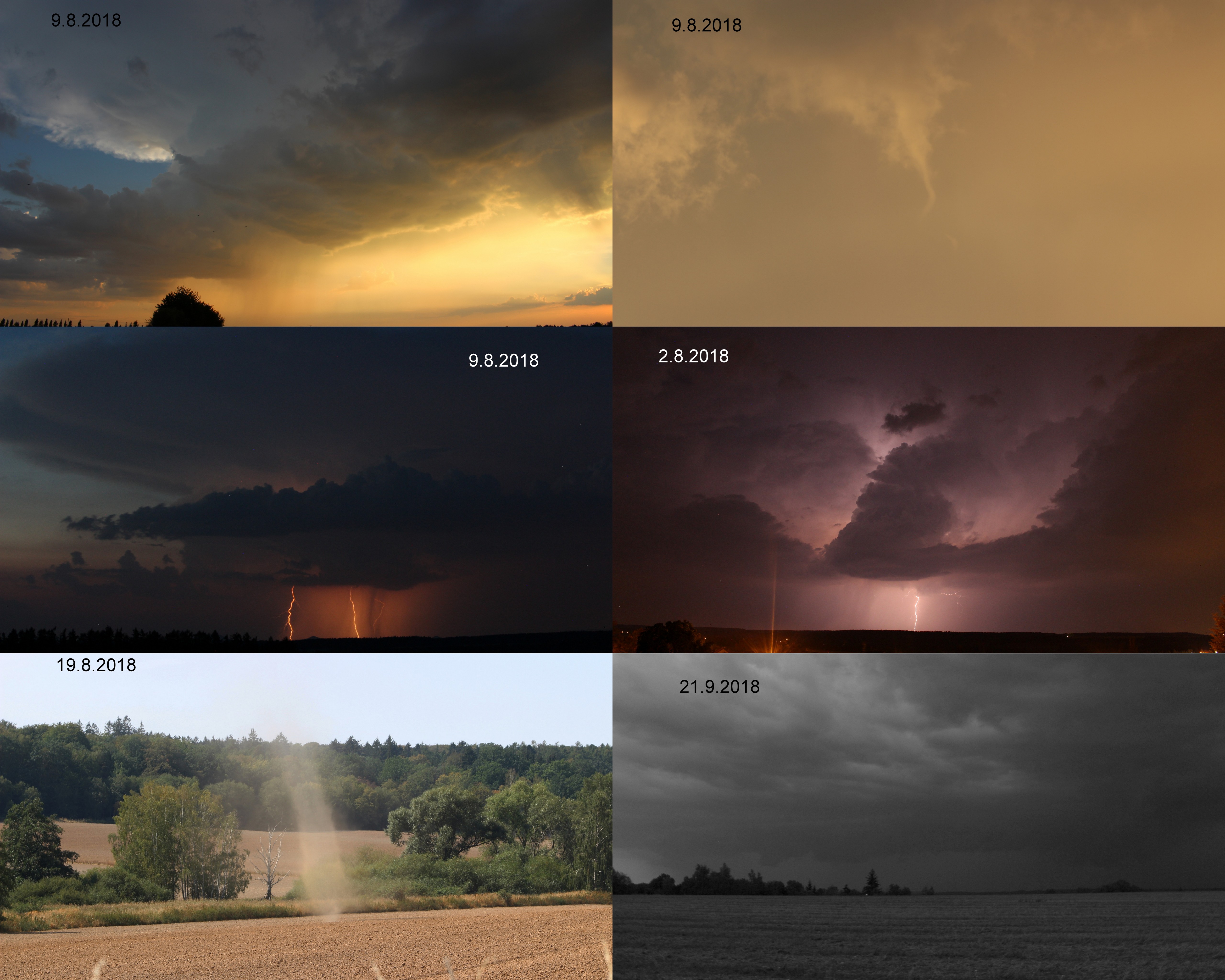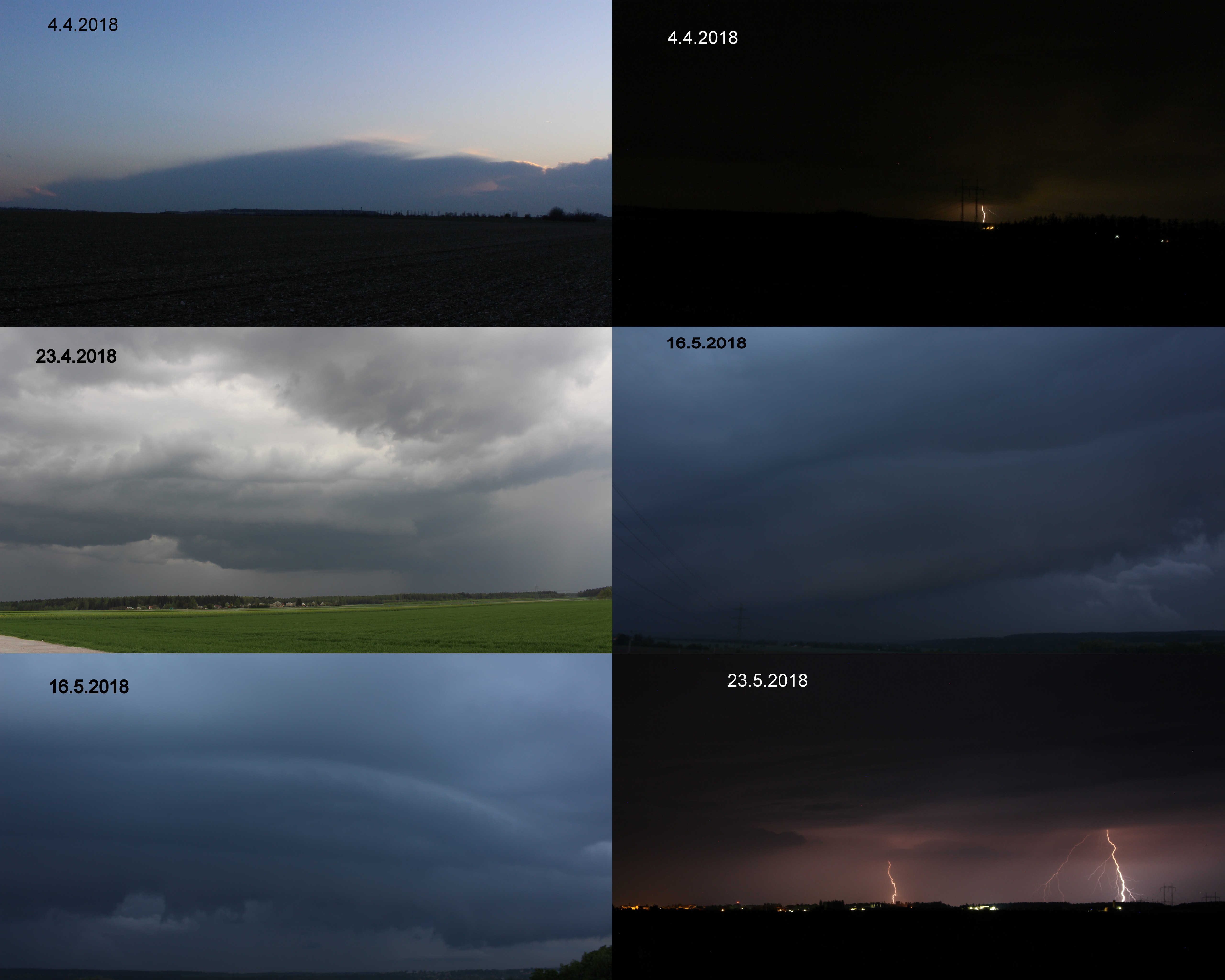 Bouřková sezóna 2017 byla jako celek nad územím naší republiky rekordní. Chodil nespočet supercel a vyskytlo se nejméně 5 derech. Ovšem západ Čech byl ze hry venku. Bouře se rozpadaly, nebo slábly, případně chodily špatně načasované. Výjezdy končily nezdarem a nebo výsledek neodpovídal úsilí. Sezóna 2018 byla rapidně odlišná. Byla slabá jako celek, ne-li nejslabší za posledních 10 let, průběhem velmi zvláštní, rozdělená prostředkem léta na dvě části, kdy první část trvala od začátku dubna do 1/2 června a druhá byla v srpnu a v září. U nás bylo během ní pěkných situací málo, na prstech jedné ruky. Na rozdíl od předchozí sezóny přinesly tyto situace fotogenické bouřky, za kterými se obvykle nejezdilo dál, než "za humna" a to sebou neslo značnou časovou i finanční úsporu. Můžu tedy říct, že pěkných fotek z této sezóny máme násobně více, než z té loňské, tedy alespoň u nás.