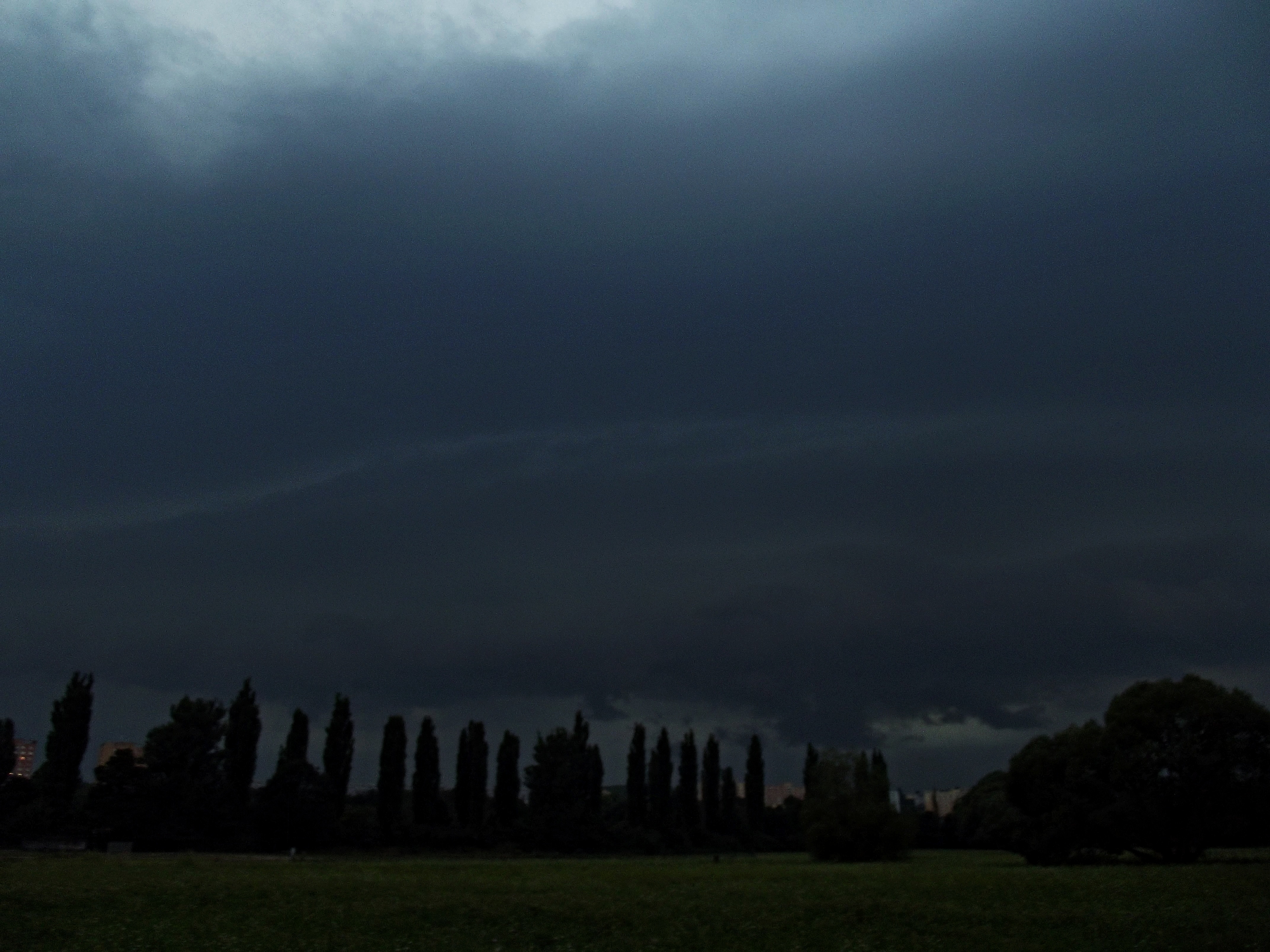 Krásná bouřková linie dorazila kolem 8h večer ,přešel krásnej impozantní schelf a přinesla sebou celkem ,pro mě,nevídaný jev...za schelfem se začala z ničeho nic protrhávat obloha a do toho začaly sršet CG blesky,to jsem teda ještě neviděl..škoda,že na focení už byla tma,zrcadlo bohužel nemám. :x