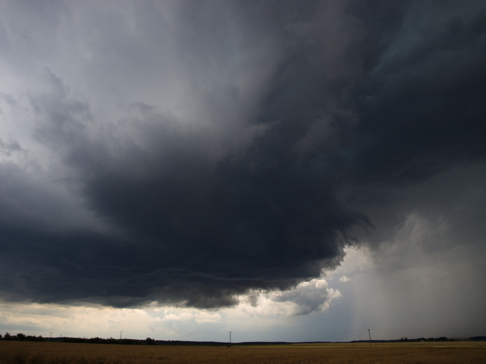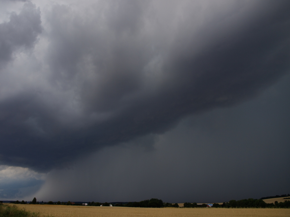 Dneska se do bezprostřední blízkosti Slaného dostaly 3 silné bouřky, z toho 2 nás přešly. První vytvořily několik km severně silné srážkové pole a poměrně zajímavě se vyvíjela i předtím. Druhá byla možná její součást, nebo se od ní odělila a šla jižněji. Srážkové pole bylo spíše průhledné, ale před ním byla docela děsivá základna. Když nás přecházela, přinesla kromě silného deště po dlouhé době také krupobití. Nějvětší kroupy až 1,2 cm.