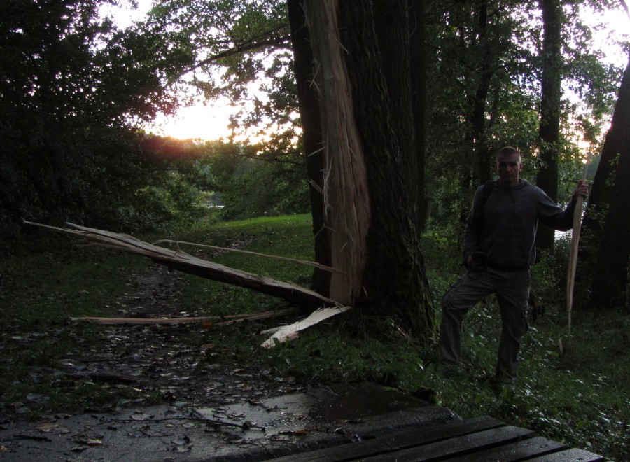 Tak přeci jen se mi povedl parádní úlovek, ne v podobě pěkné fotky ale ve zdokumentování kontaktu blesku se stromem. Ten měl spodní část kmene rozštípnutou a do vzdálenosti 20-30 m byly rozházené až 2 m dlouhé podélné třísky. Řekl bych ukázkový případ. Možná něco sesmolím do článku, s něčím takovým jsem se osobně potkal prvně.