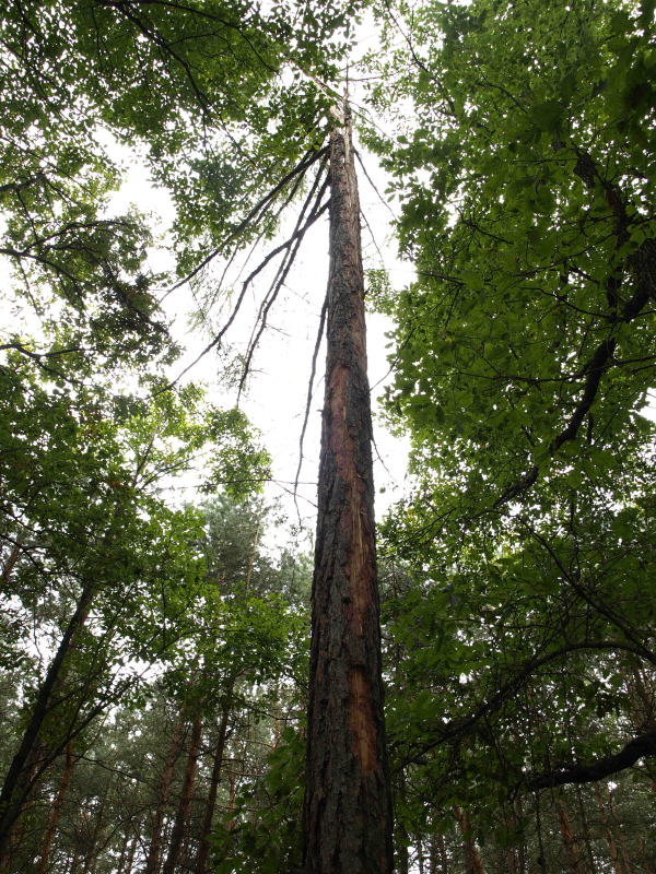 Strom bohužel nešlo vyfotit kvůli okolním stromům v lese. Napovím ale, že horní třetina stromu je rozštípnutá na tři části, který se ohnuly do stran.