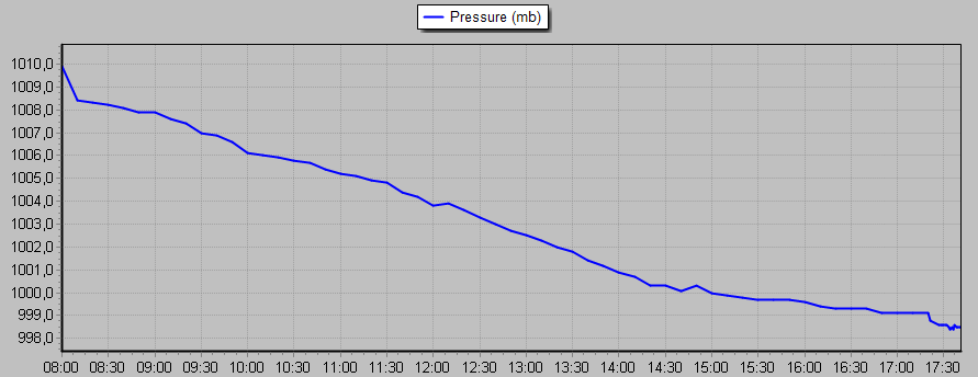 Dnešní nejnižší tlak: 999,8 hPa (právě teď)