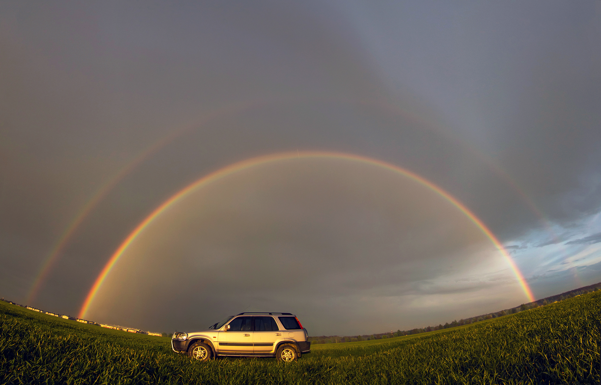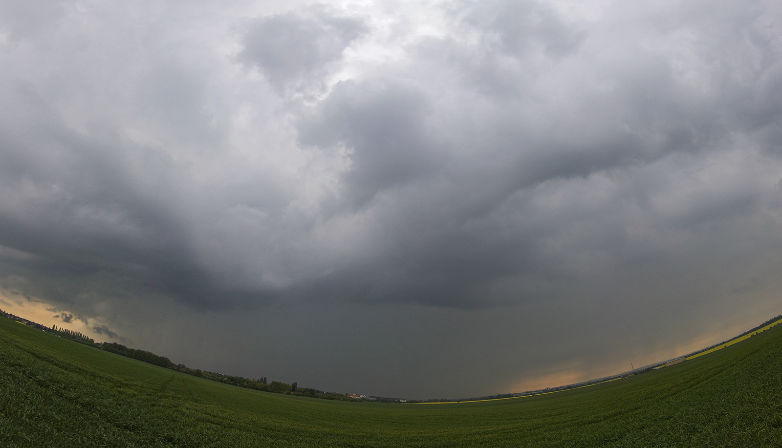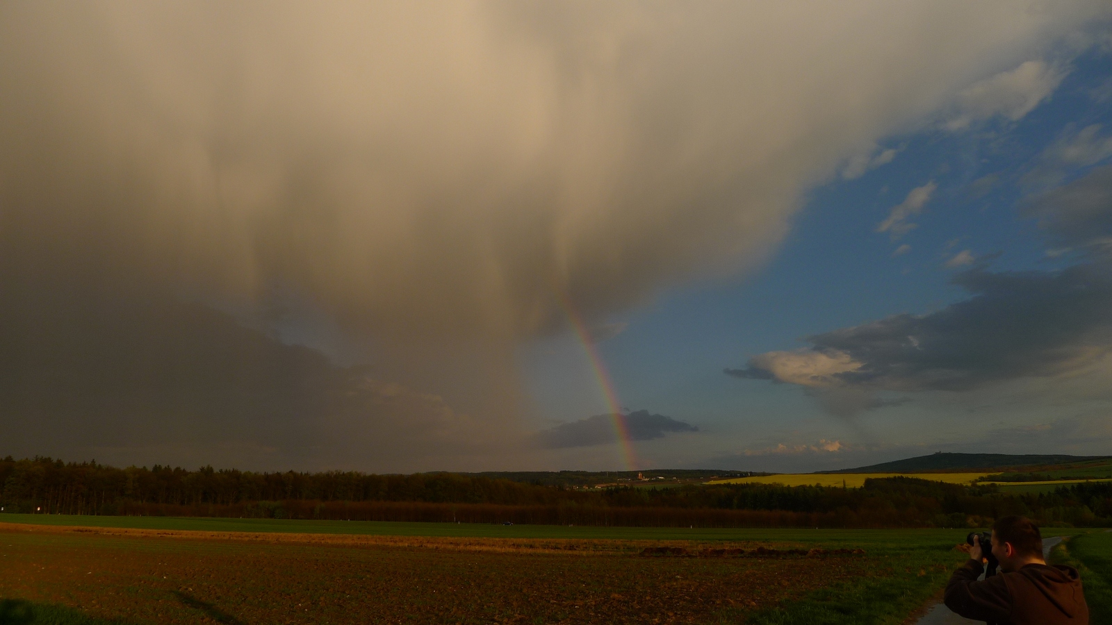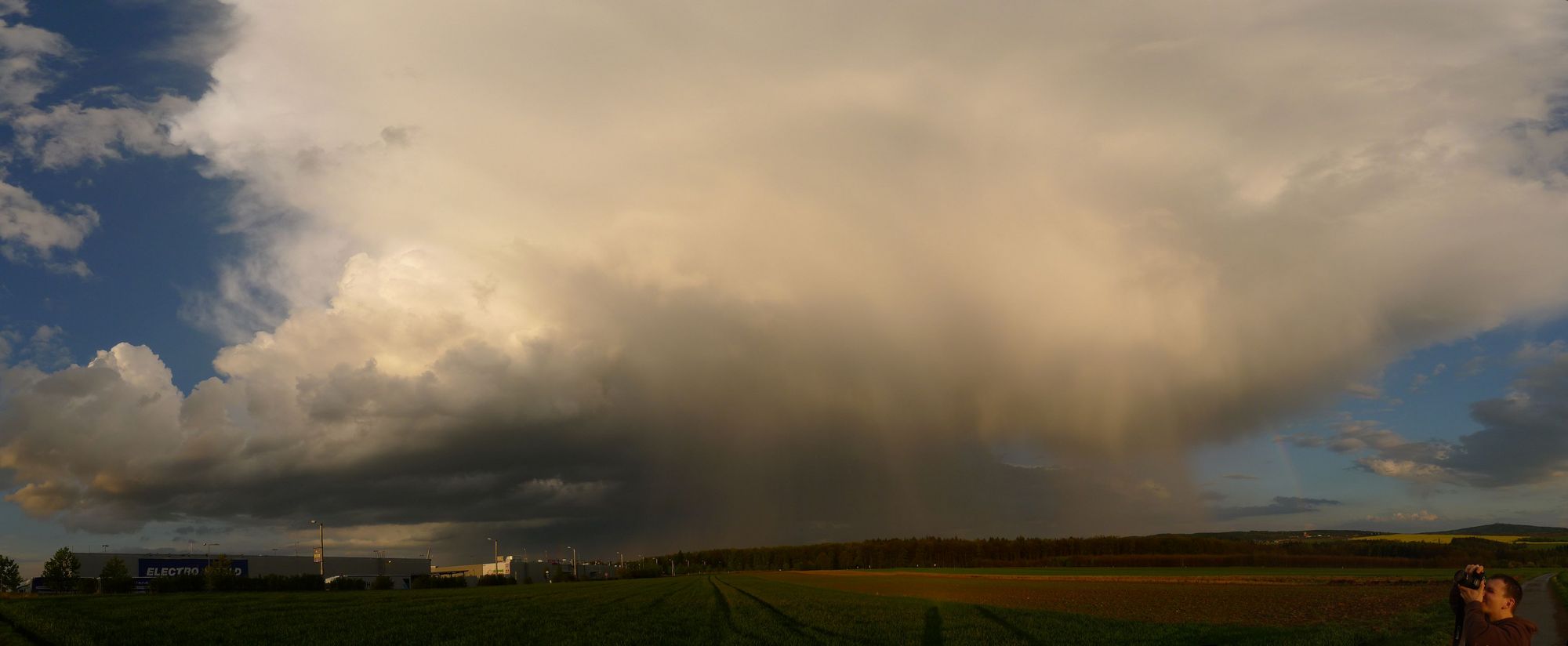 Bez struktury, bez organizace, ale potesila. Jeste vice potesila duha co prisla po odchodu jiz zdechleho systemu, kdy se slunecni papprsky radne oprely do srazkovych pruhu, cimz byla vegenerovana jasna primarni a sekundarni duha. Vice duhovych fotek > http://ukazy.astro.cz/prirustky.php?Id=7601. Dale byl pozorovan jev heiligenshein na kapickach vody v psenici > http://ukazy.astro.cz/prirustky.php?Id=7600 . Da se rict ze cela akce byla spise o optickych jevech nez o bourkach :) Pred zapadem Slunce se objevila jeste red rainbow a to uz bylo opravdu vsechno.