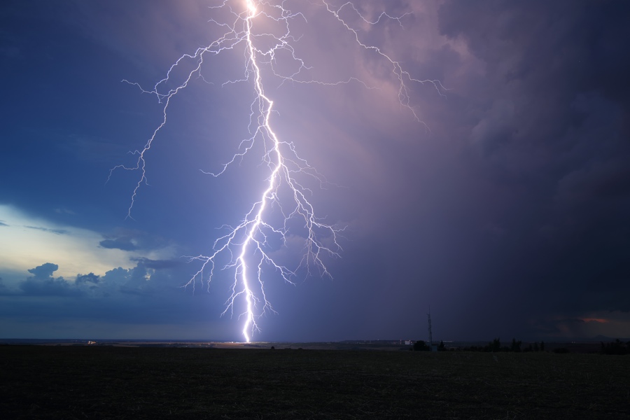 Kolem 20. hodiny pak vznikla bouřka východně od mé pozice - odhaduji někde u Kladna a směřovala severozápadně. Viditelné záblesky a slyšitelné hromy, nejbližší výboj asi 4km.
