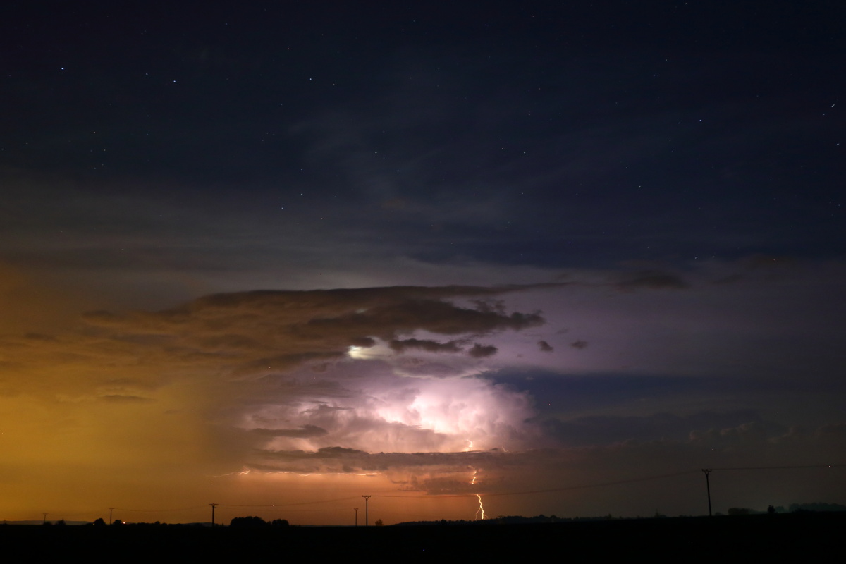 Tak to ponocování přece jen za něco stálo. Mě to trklo, že by sem ty bouřky z Německa nakonec mohly dorazit, jenže k půlnoci jsem už neviděl na oči a vstávání do práce neodpouští, tak jsem se aspoň ráno kochal stále ještě mohutnou konvekcí. Parádní fotky, ale příště by to chtělo přes den, nebo ideálně večer... :-)