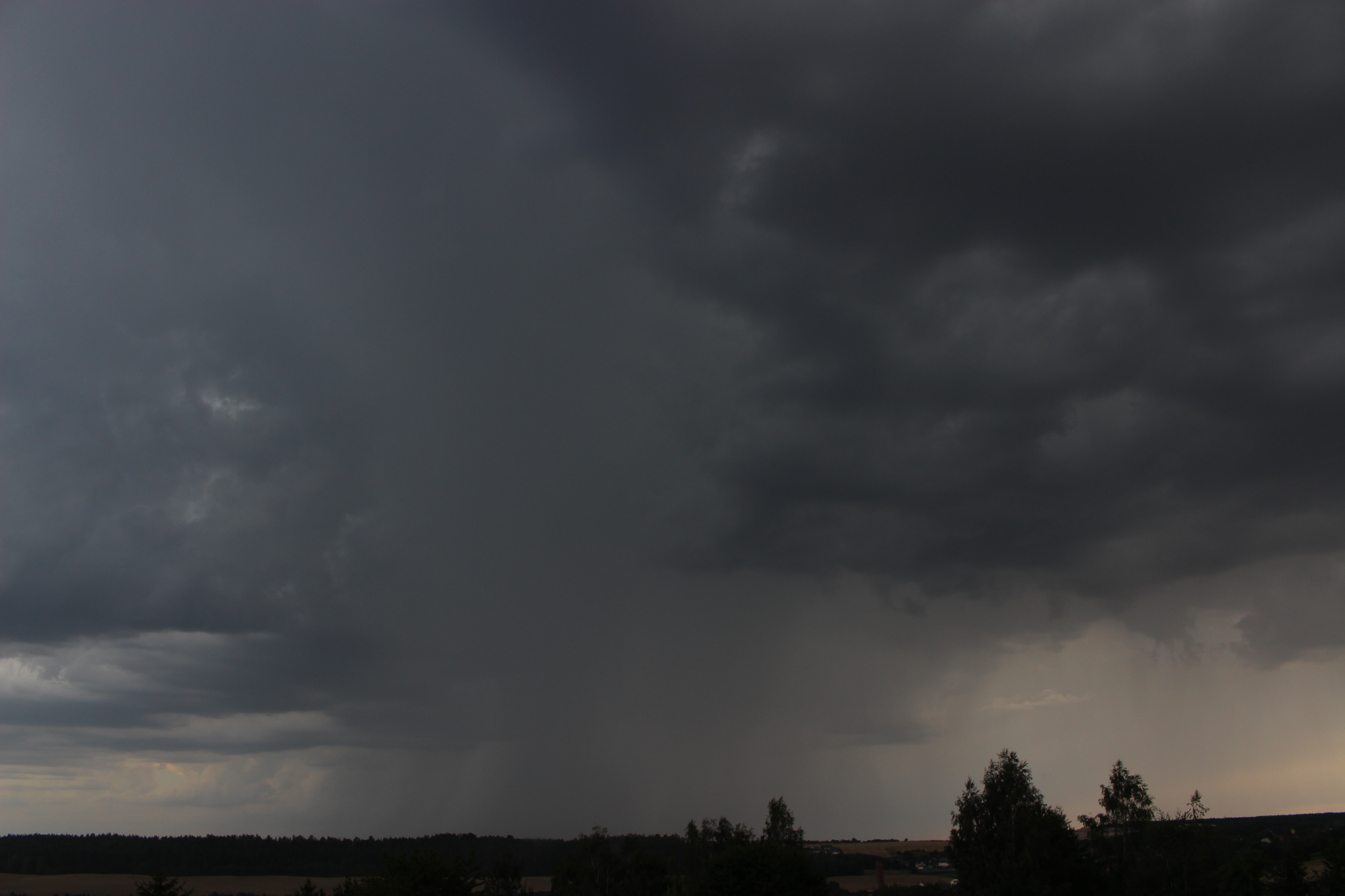 Jako zajímavost základna bouřky mířící někam na Prahu - Jih. Fotka na prd, líp to nešlo.