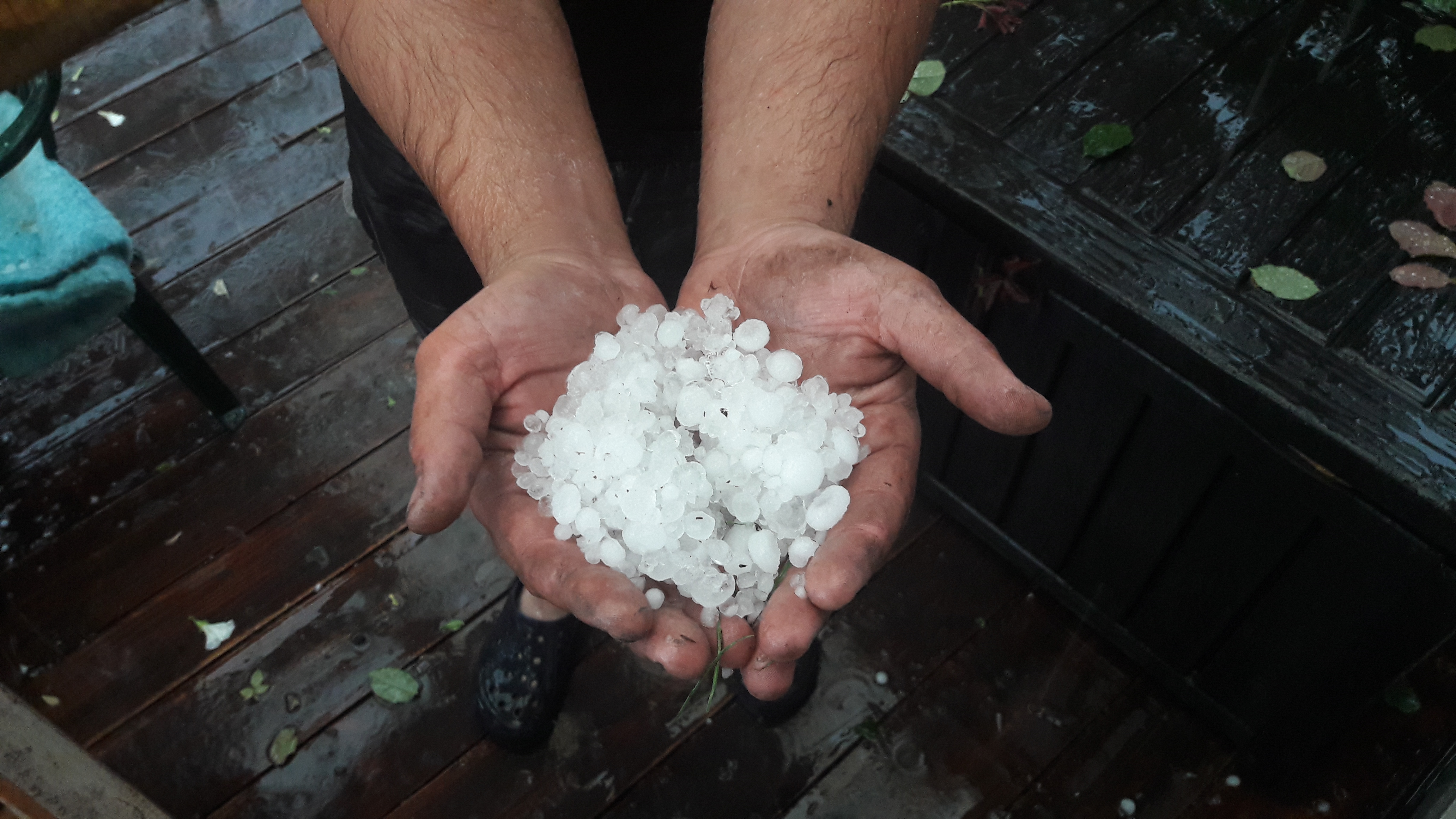 Krupobití začalo okolo 17:10 a trvalo cca. 25 minut. Způsobilo naštěstí pouze malé škody. Rozstřílená pergola, zničené zahrádky. Poté se zvedl velký vítr. Při cestě domu byla každá jabloň nějak polámaná, halda stromů ulámaná úplně. V lesích po okolí bylo také mnoho stromů polámaných. Napršelo 25 mm srážek.
