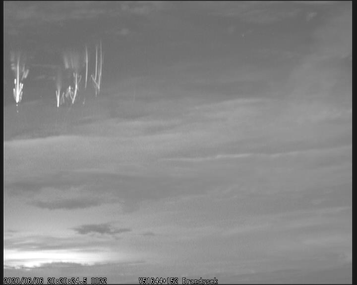 Večer 6. 6. 2020 kolem 22:13 SELČ (snímek má špatnou časovou značku, protože záznam běžel na PC, který je odpojený od internetu a tudíž se časem rozjely hodiny) se mi povedlo pomocí kamerky Watec zaznamenat zatím asi nejlepší Sprity ze slabé MCSky v okolí Orlických hor (vzdálenost cca 150 km). Bohužel to byl jediný úlovek kvůli množství oblačnosti, která překážela ve výhledu.