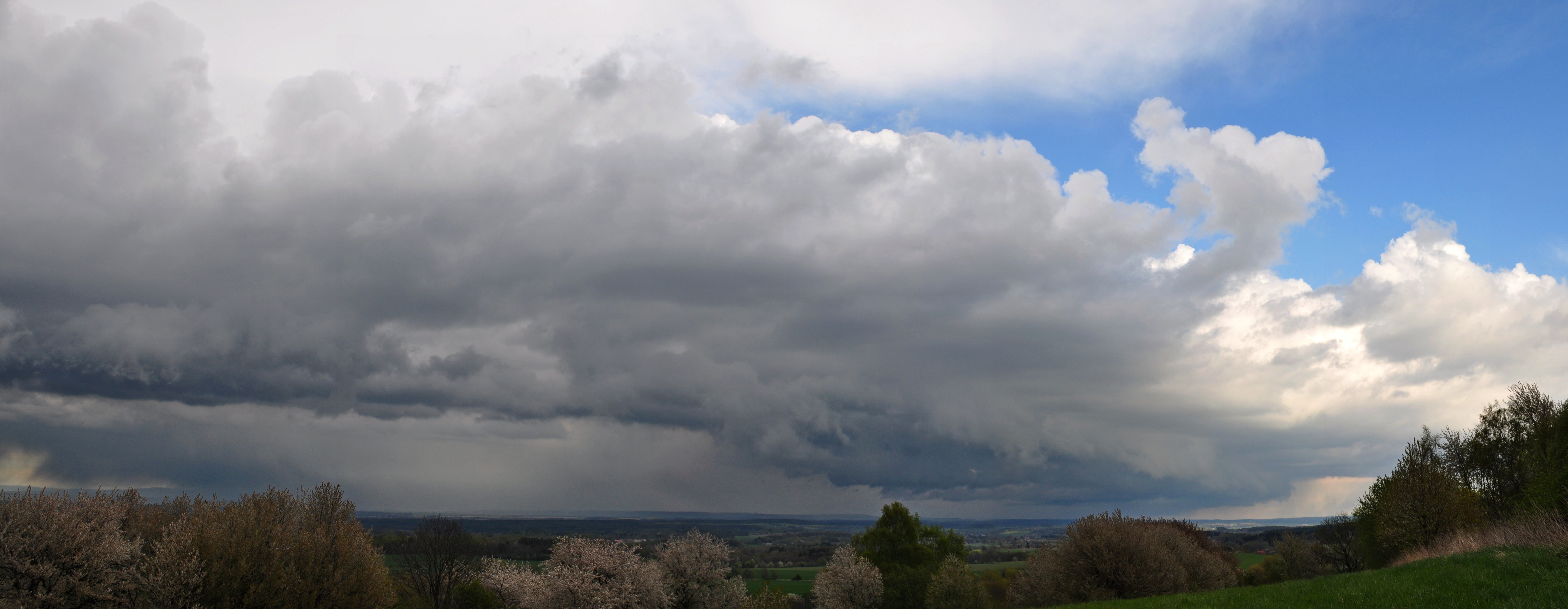 Struktura čela bouře byla nevýrazná, celkem pěkné byly jen srážkové pruhy.