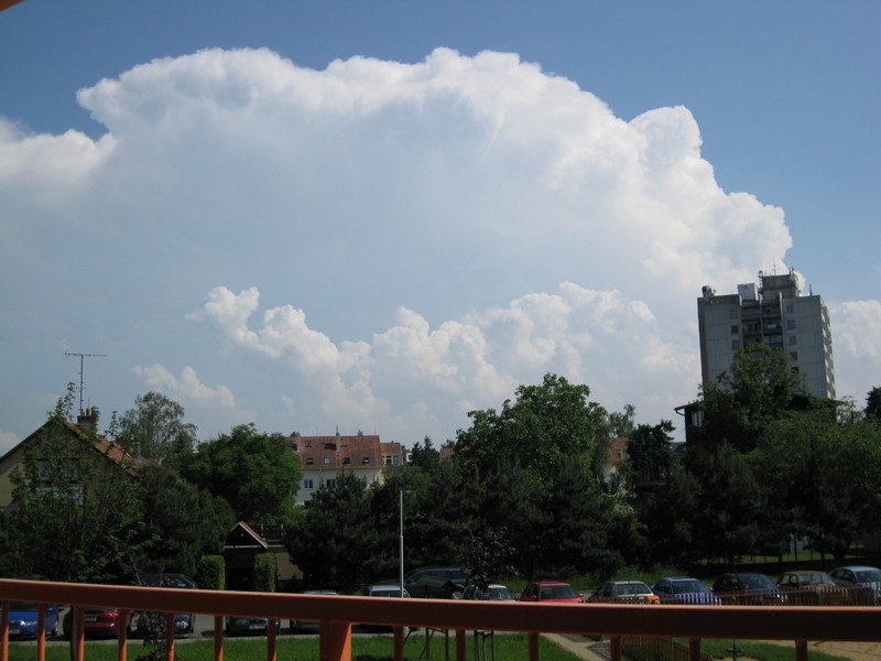 Ovšem to co, teď během 15 minut naskočilo na J od nás je teda síla! Před 15 minutama nic a teď tam vysí další obří Cb. Asi vyrazím do terénu, z okna už nato není tak dobrý výhled. ;)